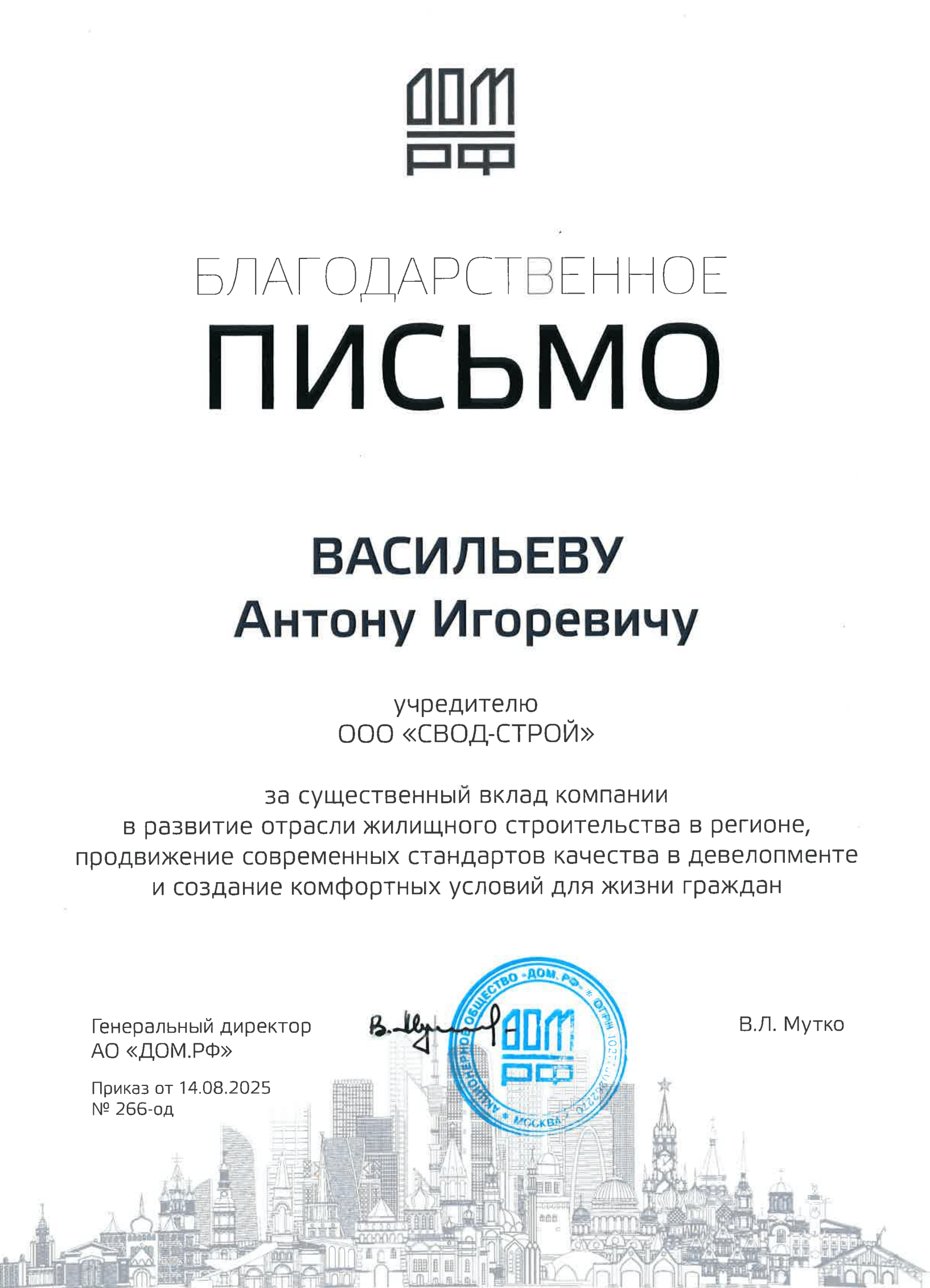 Руководит процессом — Васильев Денис Игоревич, коммерческий директор строительной компании «СВОД-СТРОЙ»